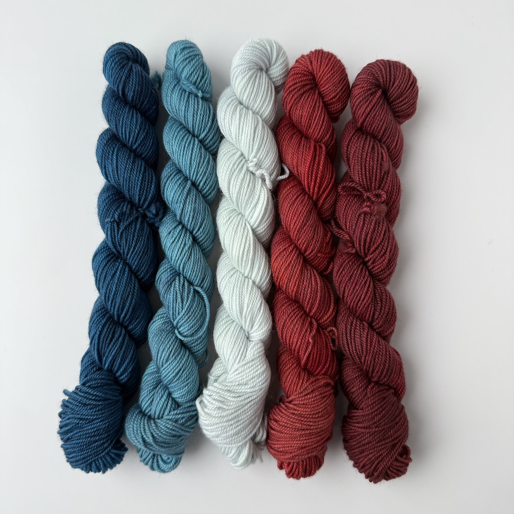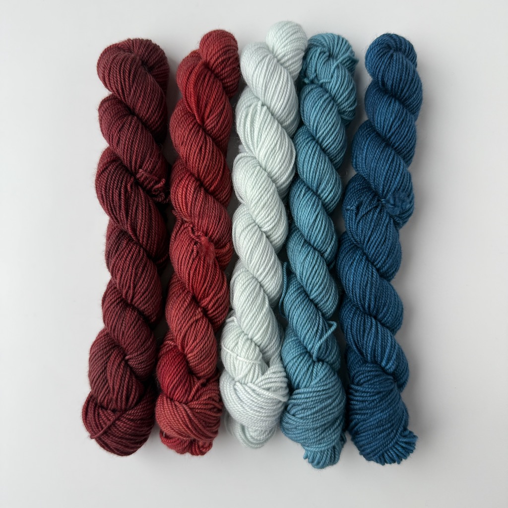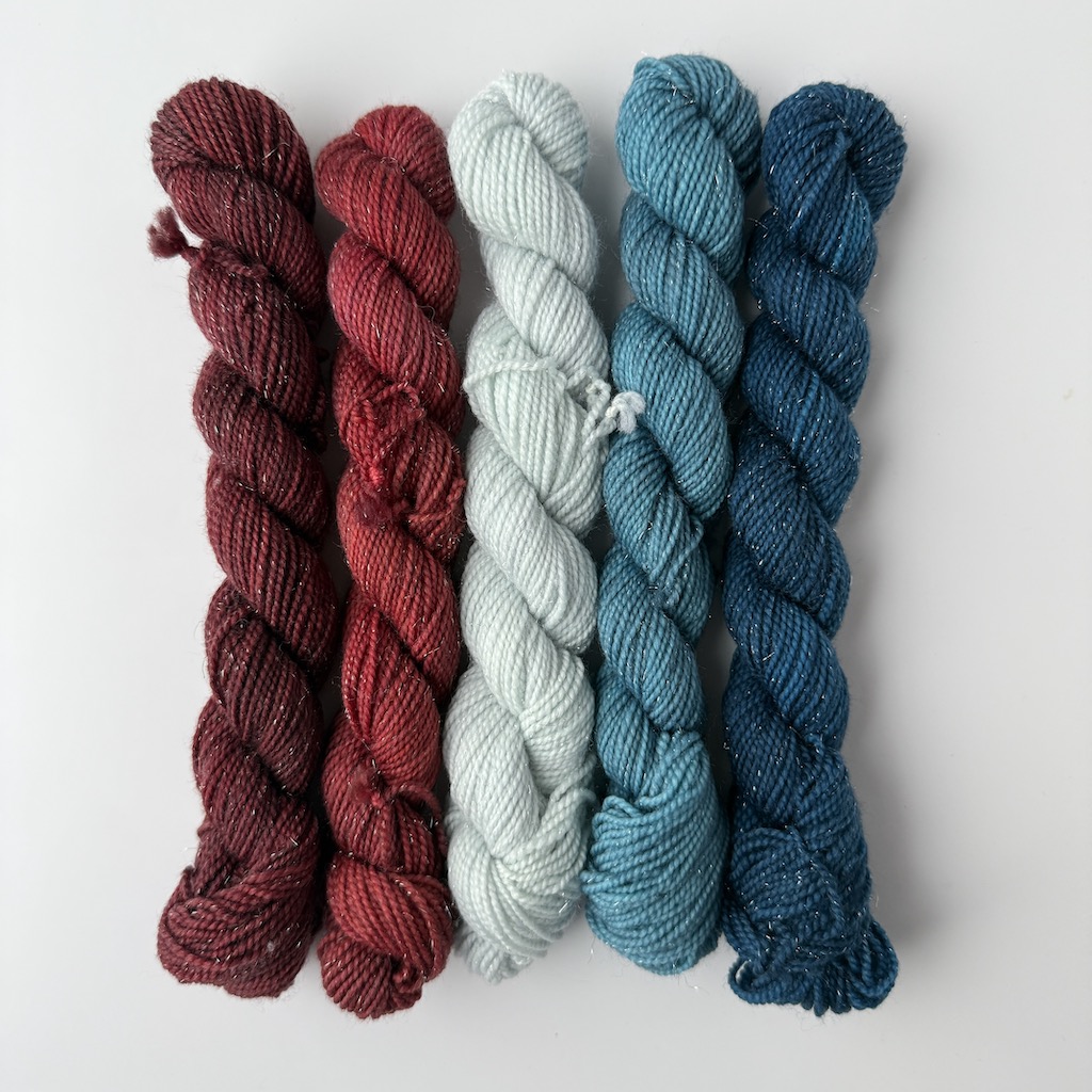 Dit is een set van 5 mini strengen. Elke streng is 20 gram en bevat 85 meter. In totaal krijg je dus 100 gr garen, het equivalent van 1 grote streng.